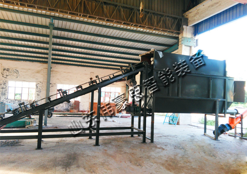 粉體自動(dòng)拆包機(jī)是一種代替人工拆包卸料的自動(dòng)拆包設(shè)備,它由皮帶輸送機(jī)傳送到45度角的滑板上并依靠重力沿滑板下滑,在下滑過(guò)程中由快速轉(zhuǎn)動(dòng)的刀片將包裝袋割開,被割開的殘袋和物料滑入滾筒篩進(jìn)行篩分。從滾筒篩落下的物料由螺旋輸送機(jī)輸出,破損的包裝袋、雜質(zhì)、結(jié)塊物料被滾筒篩帶出機(jī)體。割刀破袋過(guò)程中引起的粉塵由布袋式除塵器捕捉并抖落。