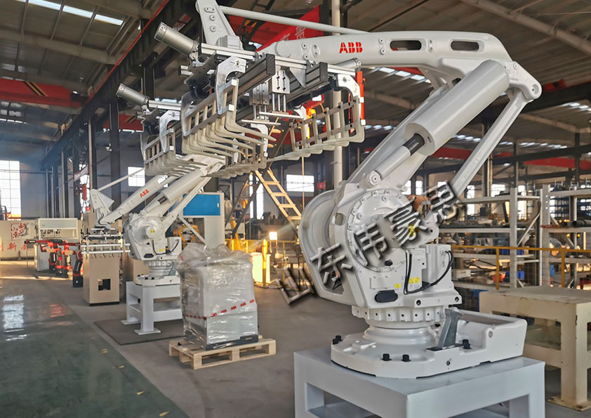 4.完善的配置機構(gòu),除機器人系統(tǒng)外,還有棧板輸送機、棧板定位裝置、空棧板收集裝置等。
