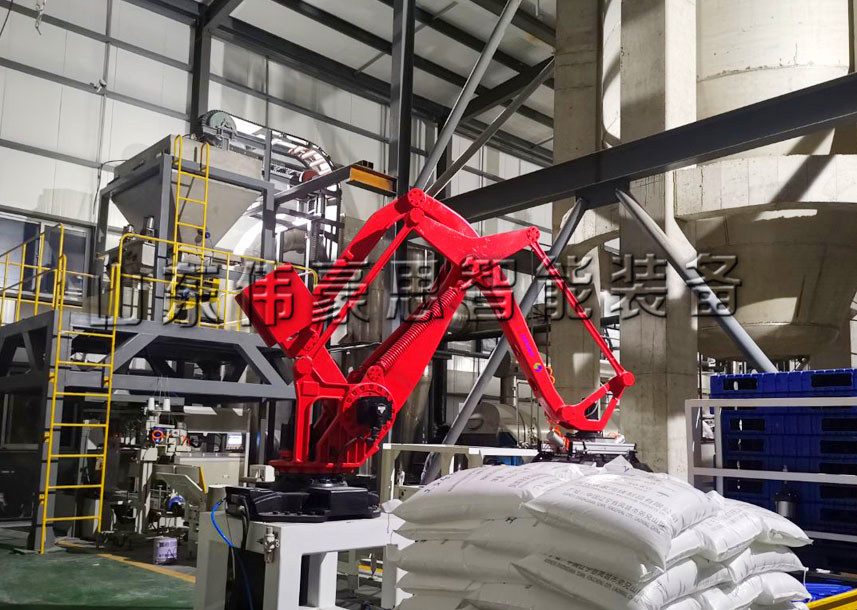 企業(yè)為了提高自動化程度和保證產(chǎn)品質(zhì)量,在碼垛工序通常使用自動云母粉自動碼垛機器人來進行碼垛作業(yè),它作業(yè)精度高、柔性好、效率高,克服了傳統(tǒng)的機械式碼垛占地面積大、程序更改復(fù)雜、耗電量大的缺點;同時避免了采用人工碼垛造成的勞動量大、工時多、無法保證碼垛質(zhì)量等問題。