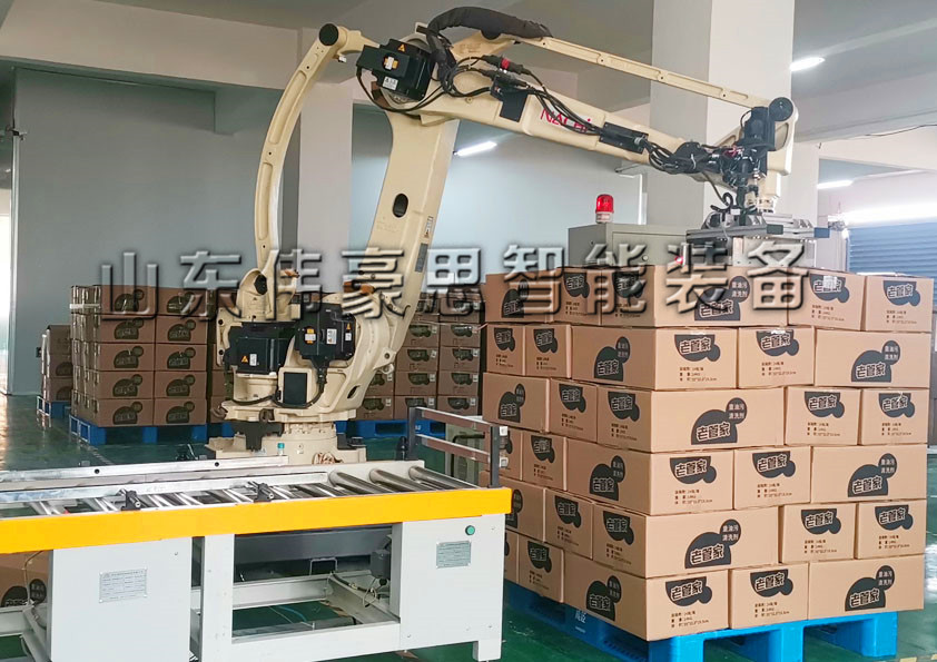 自動(dòng)碼垛機(jī)是智能裝箱碼垛后面的一道工序,它將生產(chǎn)線上的紙箱碼成垛,方便存儲(chǔ)。