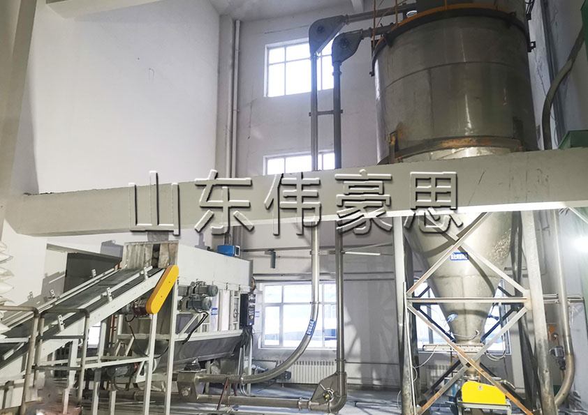 袋料由皮帶機(jī)輸送至破袋機(jī),經(jīng)旋轉(zhuǎn)刀破袋后進(jìn)入主體內(nèi),通過(guò)主體內(nèi)的振動(dòng)篩將粉料分離出來(lái),并將袋子推到出袋口,由收袋機(jī)進(jìn)行壓縮收集;分離出來(lái)的物料落入螺旋內(nèi),由螺旋將物料推至供料器,供料器將物料均勻的輸送到加速室內(nèi),物料通過(guò)管鏈輸送機(jī)輸送到儲(chǔ)料倉(cāng)內(nèi)。