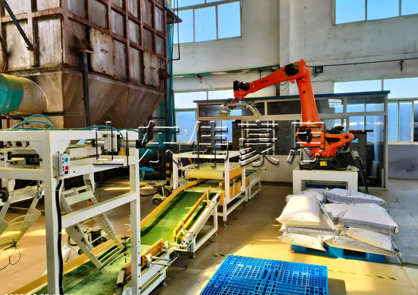 活性炭自動(dòng)碼垛機(jī)械手是代替人工從事碼垛工作的自動(dòng)化設(shè)備,通常作為包裝線的后續(xù)設(shè)備,將包裝好的物料自動(dòng)碼垛在托盤上,它采用PLC+觸摸屏控制,實(shí)現(xiàn)智能化操作管理簡(jiǎn)便、易掌握??纱蟠鬁p少勞動(dòng)人員和降低勞動(dòng)強(qiáng)度,它采用高速、平穩(wěn)、節(jié)省空間之理念設(shè)計(jì),能一機(jī)多用,調(diào)整迅速,不必為更換堆疊產(chǎn)品而煩惱。