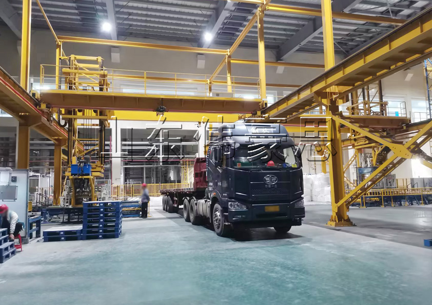 電池材料噸袋裝車機是實現(xiàn)噸袋包裝自動裝車的設(shè)備,它具備帶動貨物升降、俯仰和側(cè)移等功能,根據(jù)貨車停車姿態(tài)自動調(diào)整貨物,保障貨物平穩(wěn)裝車,它還具備物流車輛導(dǎo)向、車廂位置檢測、高度檢測、安全檢測等功能。