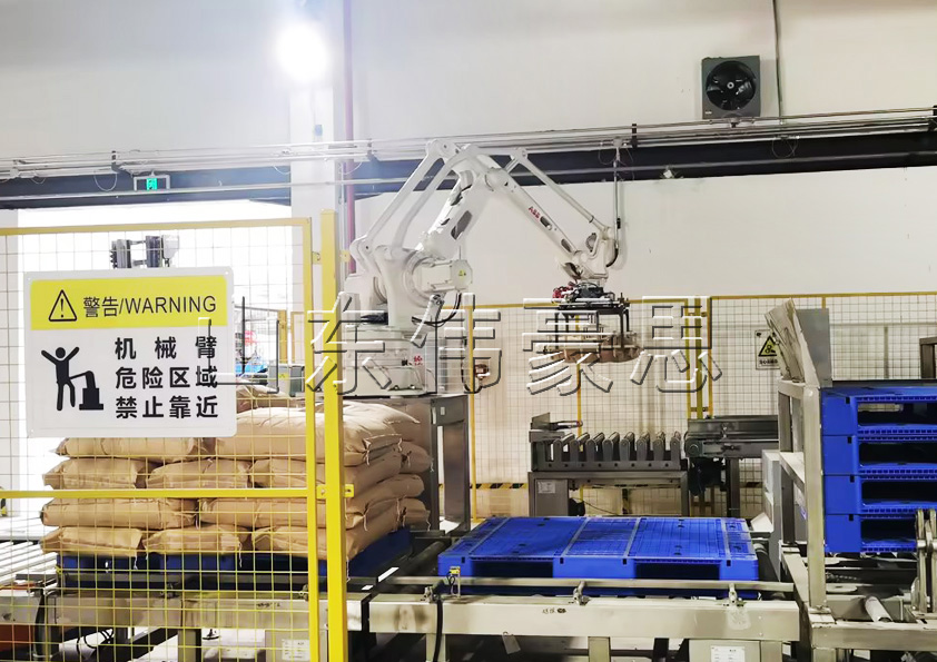 全自動(dòng)碼垛機(jī)器人能將不同外形尺寸的包裝貨物,整齊、自動(dòng)地碼(或拆)在托盤上(或生產(chǎn)線上等)。為充分利用托盤的面積和碼堆物料的穩(wěn)定性,機(jī)器人具有物料碼垛順序、排列設(shè)定器??蓾M足從低速到高速,從包裝袋到紙箱,從碼垛一種產(chǎn)品到碼垛多種不同產(chǎn)品。應(yīng)用于產(chǎn)品搬運(yùn)、碼垛等,廣泛應(yīng)用于化工、塑膠、建材、醫(yī)藥、食品、電池材料等不同領(lǐng)域。